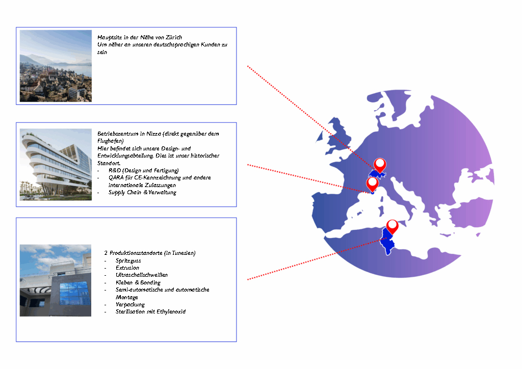 Wir sind in der Schweiz, Frankreich und Tunesien angesiedelt.